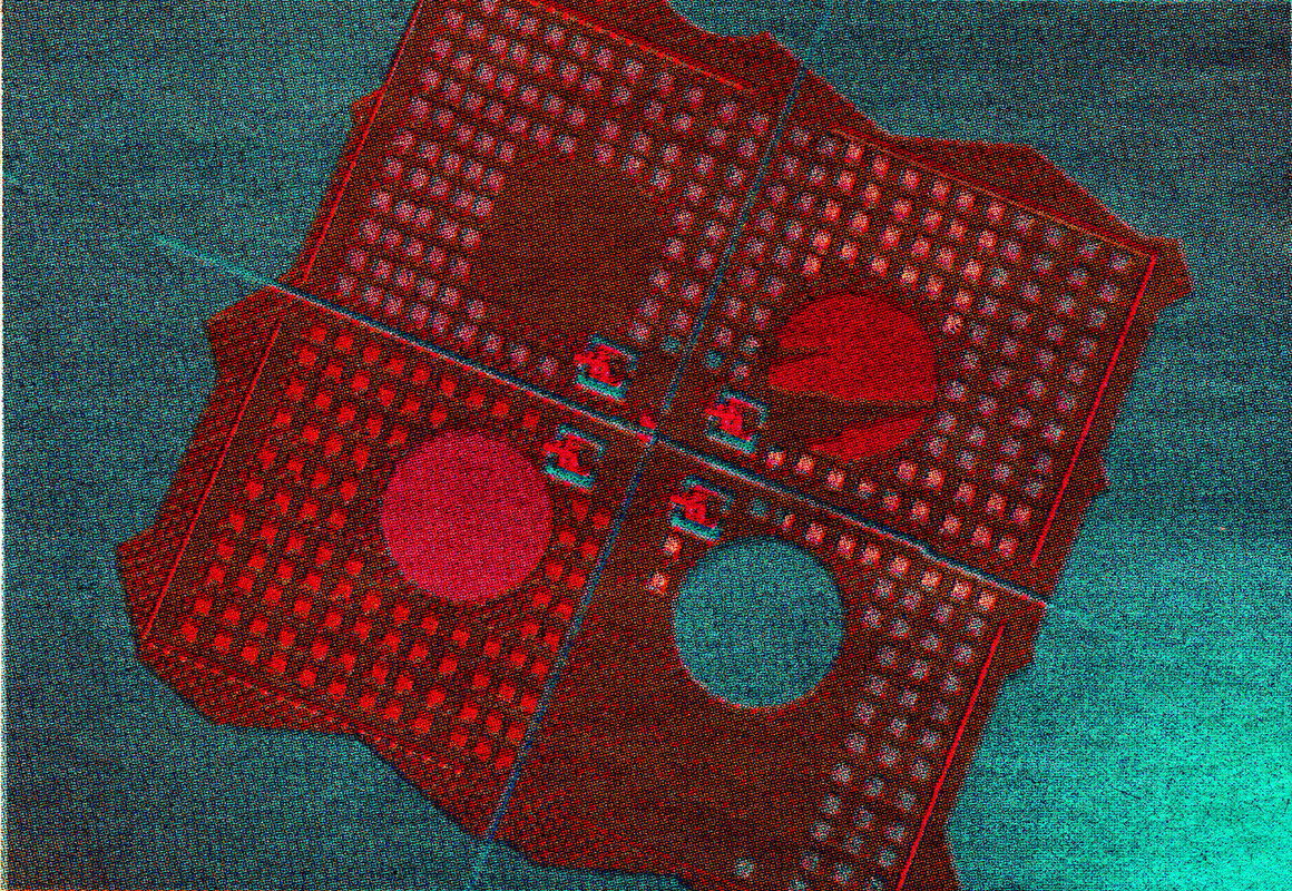 —Pyramid and set designs from Softworlds 1.1, The Sacrifice Game—Ix, aerial view -- Sculpt 3D software, 1992