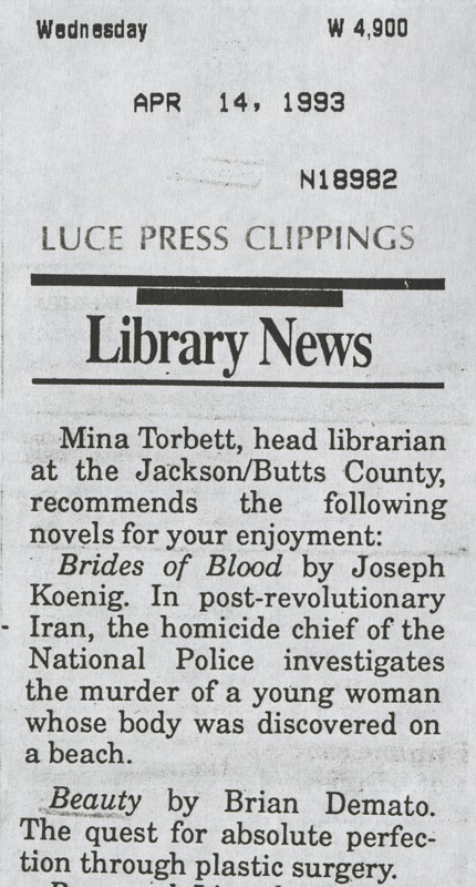 — Library News, Item, April 14, 1993